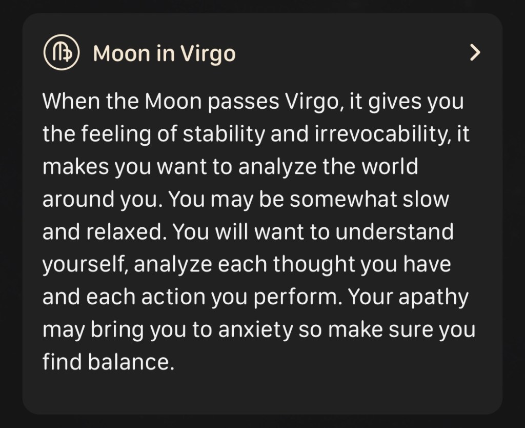 This 🌒 in ♍️ is a careful moon – be sure you are well resourced, alert, and safe. That is how you will make a difference.